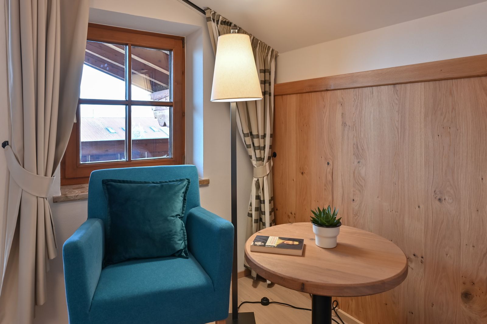 Unsere neu erstellten Einzelzimmer Alpin sind in der 3. Etage im Haupthaus gelegen und haben eine Dachschräge. Vom großen Balkon können Sie einen Ausblick über Schwangau, der Colomanskirche bis zum Buchenberg geniessen.